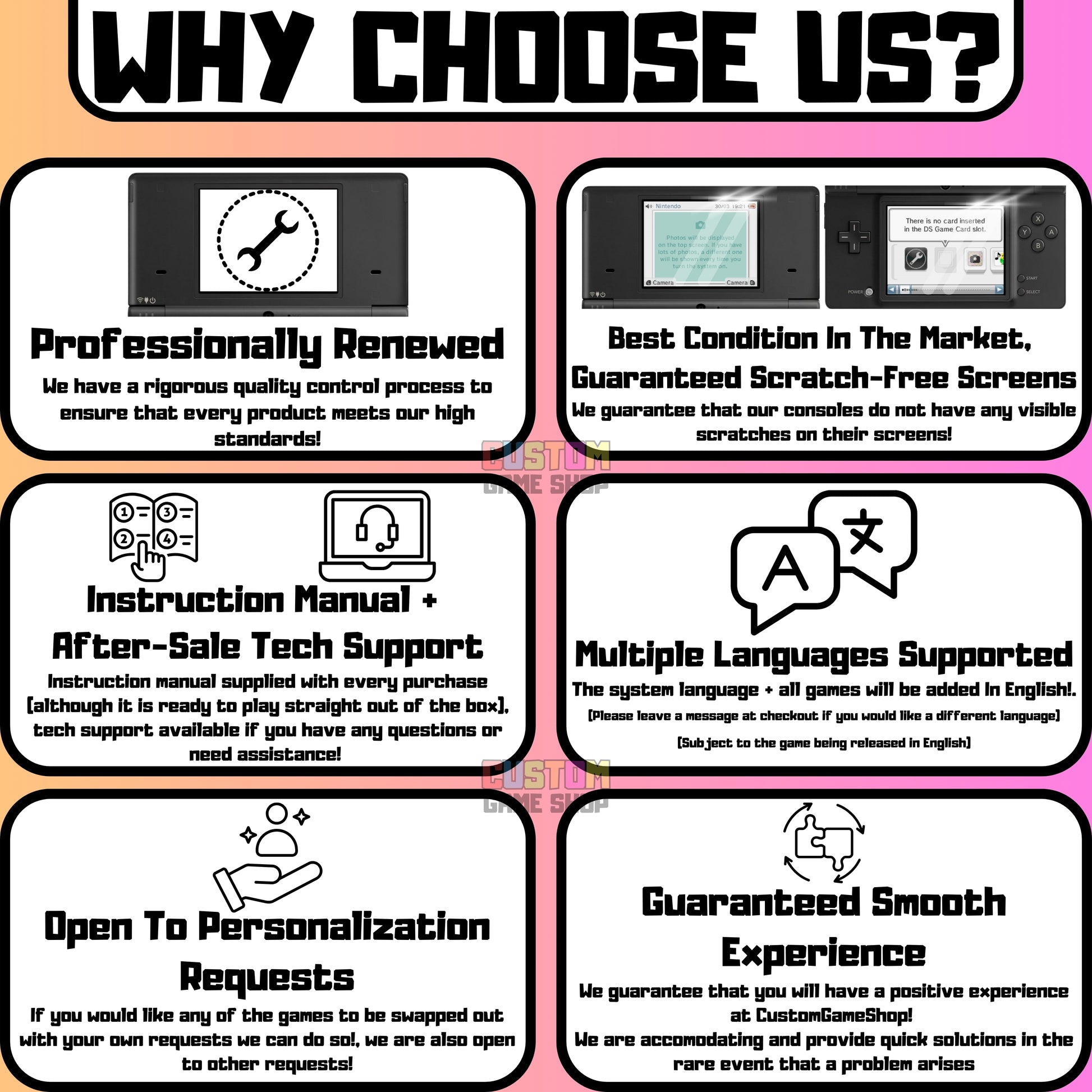 Thank you for your purchase. We hope you are happy with your purchase. However, if you are not completely satisfied with your purchase for any reason, you can return it within 14 days of delivery. Exchanging or returning can be done quickly and easily by contacting us by email at support@customgameshop.com