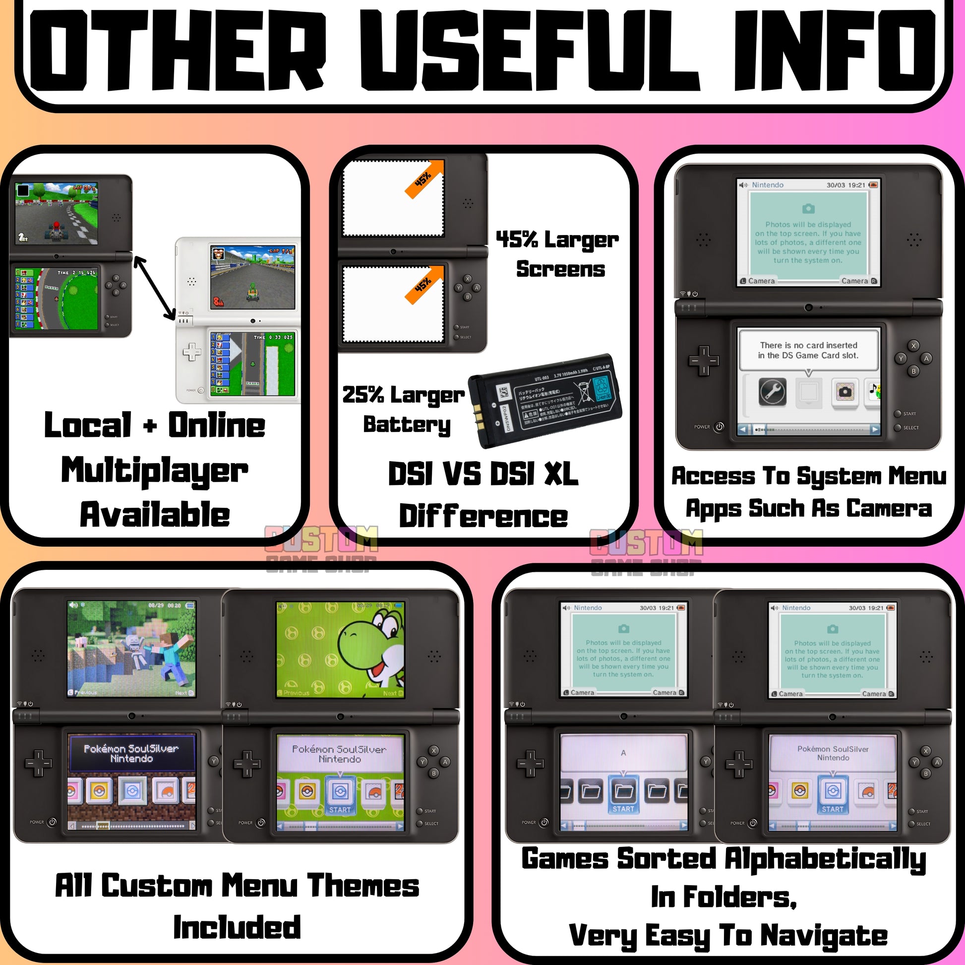Larger Screens: The DSi XL features two 4.2-inch screens, which are significantly larger than those on the original DSi, providing a more immersive gaming experience.