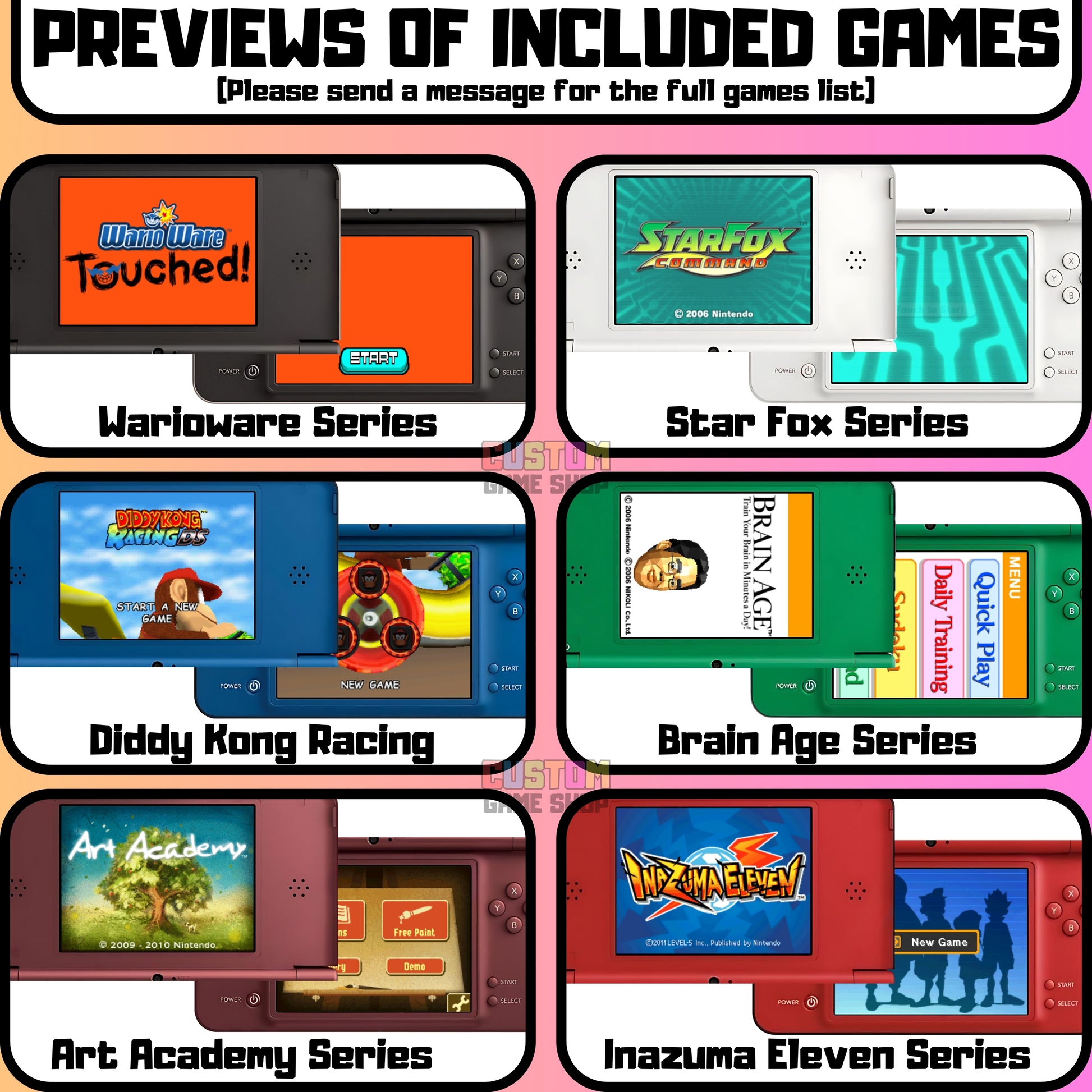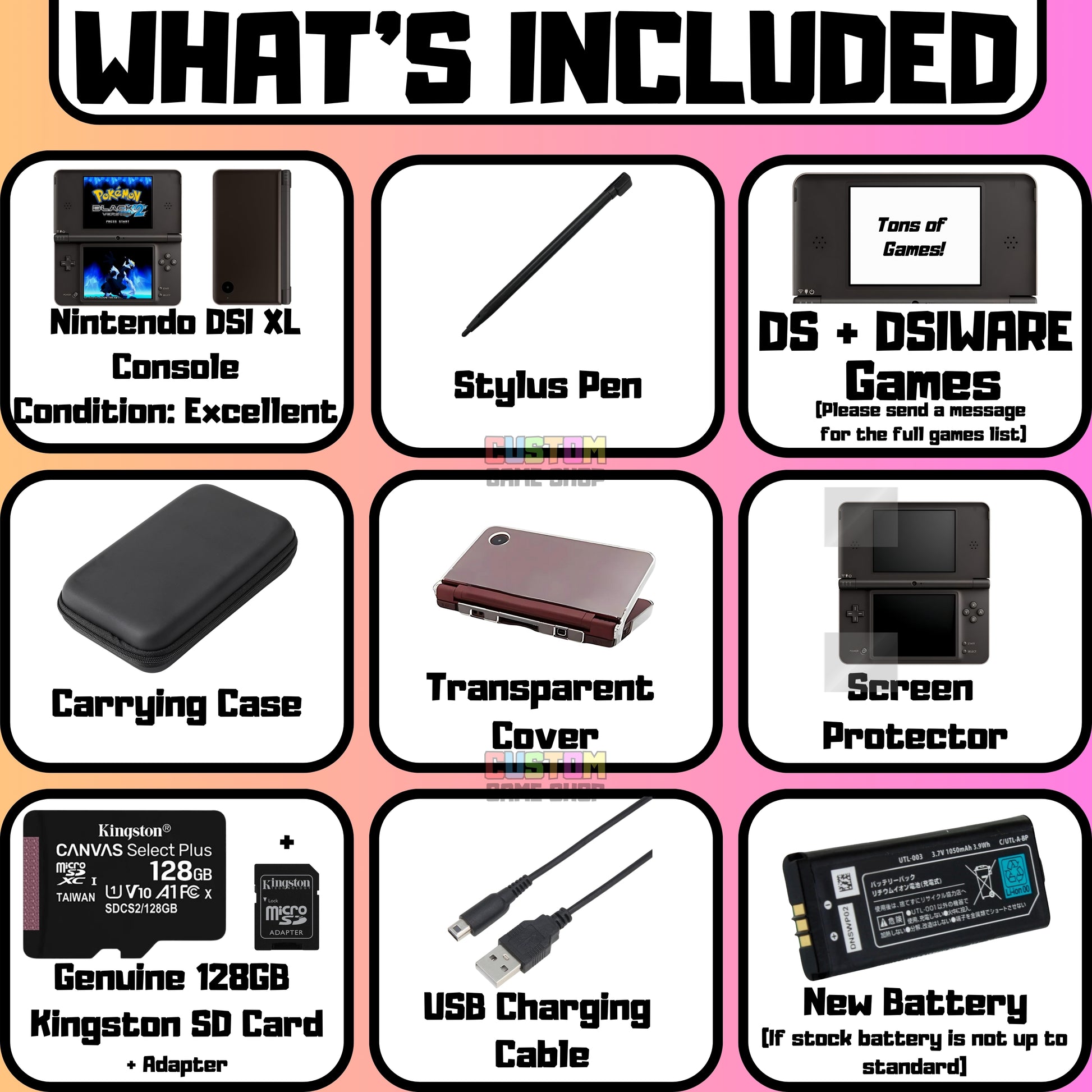 Pre-Installed Software: The DSi XL includes pre-installed software such as Brain Age Express: Arts & Letters, Brain Age Express: Math, and Photo Clock.
