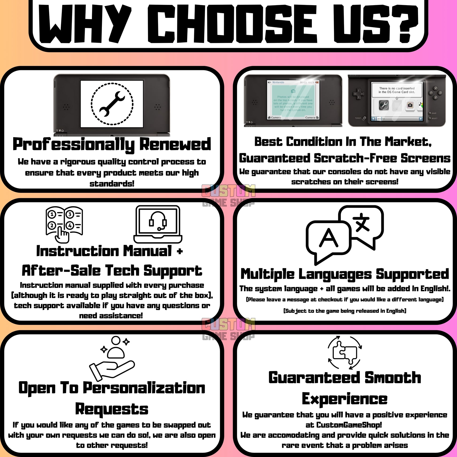 Backward Compatibility: It can play Nintendo DS games, but like the DSi, it does not support Game Boy Advance cartridges.